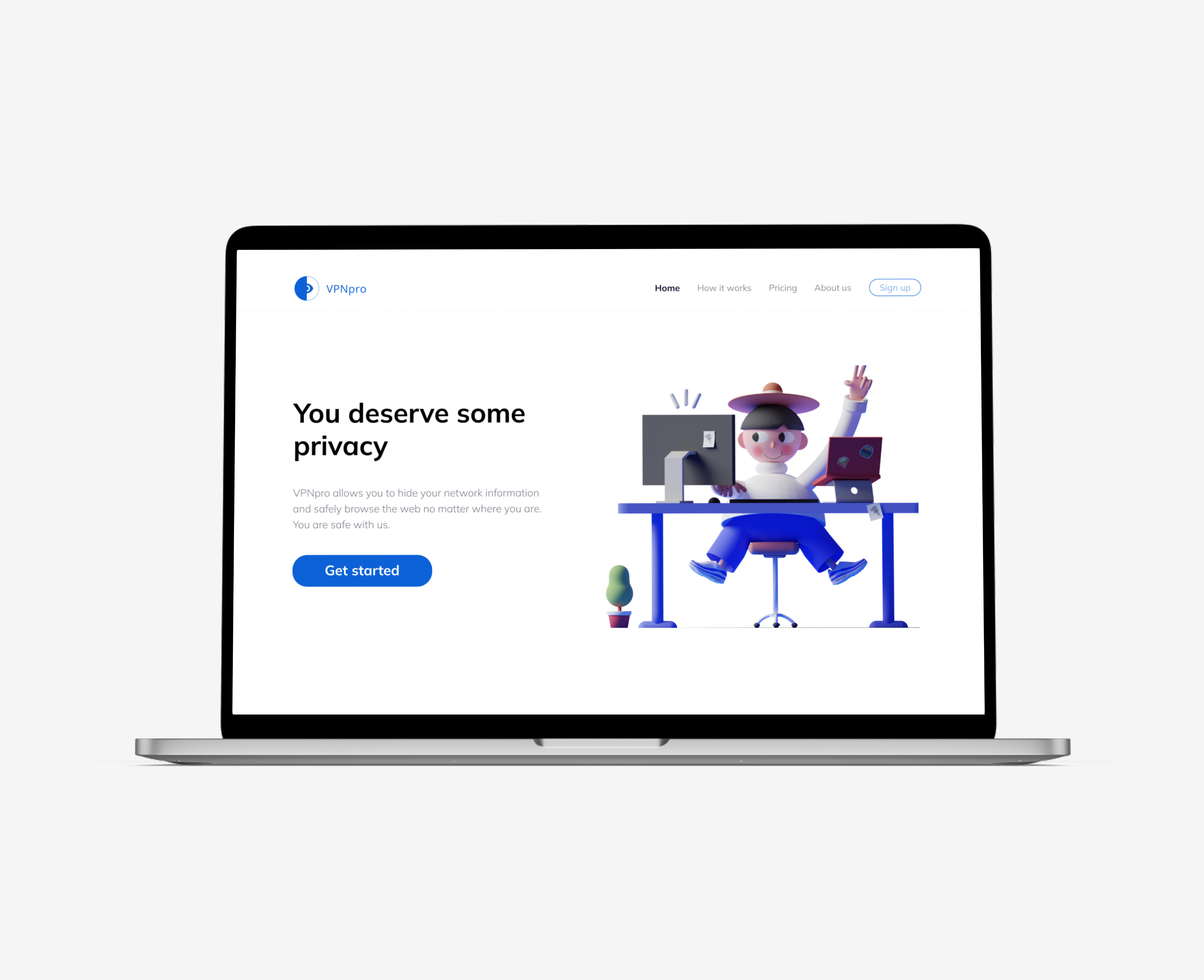 Designed a playful and trustworthy landing page for VPNpro, focusing on clear messaging and character-driven visuals to build user confidence and drive sign-ups.